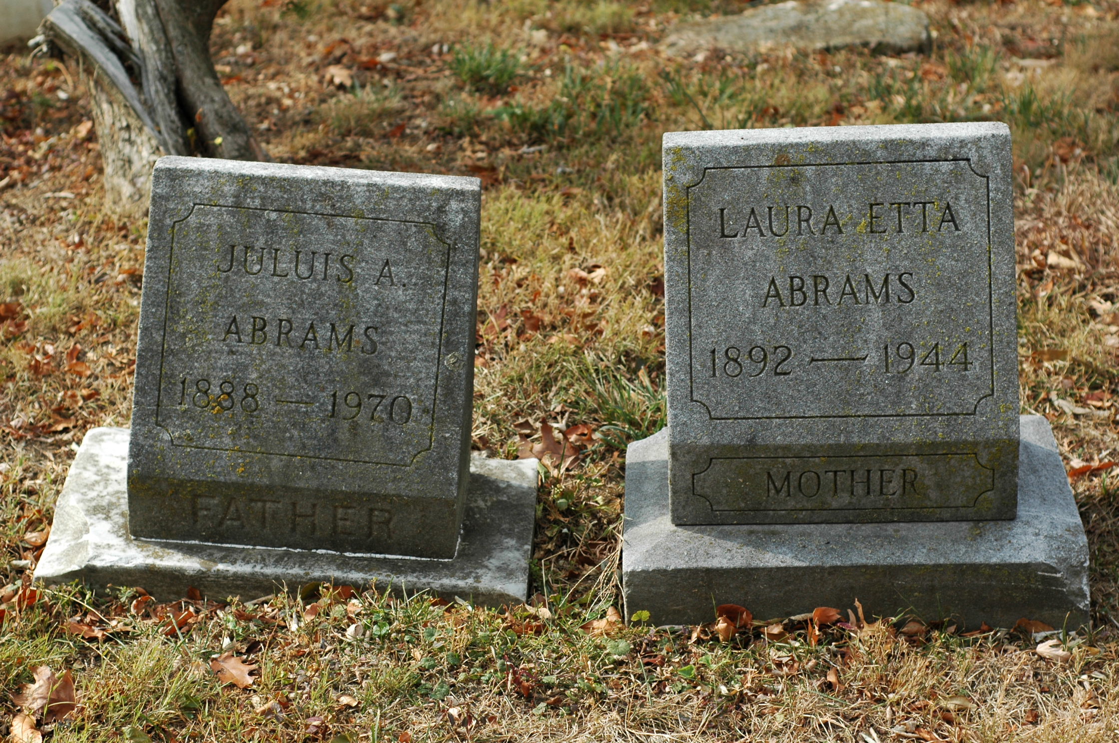 | I was surprised to see the two headstones being side by side. They are at the far end of the cemetery on South Hill. | Daddy Dear's plot in the registry is South Hill Row 19 Grave 12. His name was spelled incorrectly, it should read JULIUS, not JULUIS. |
